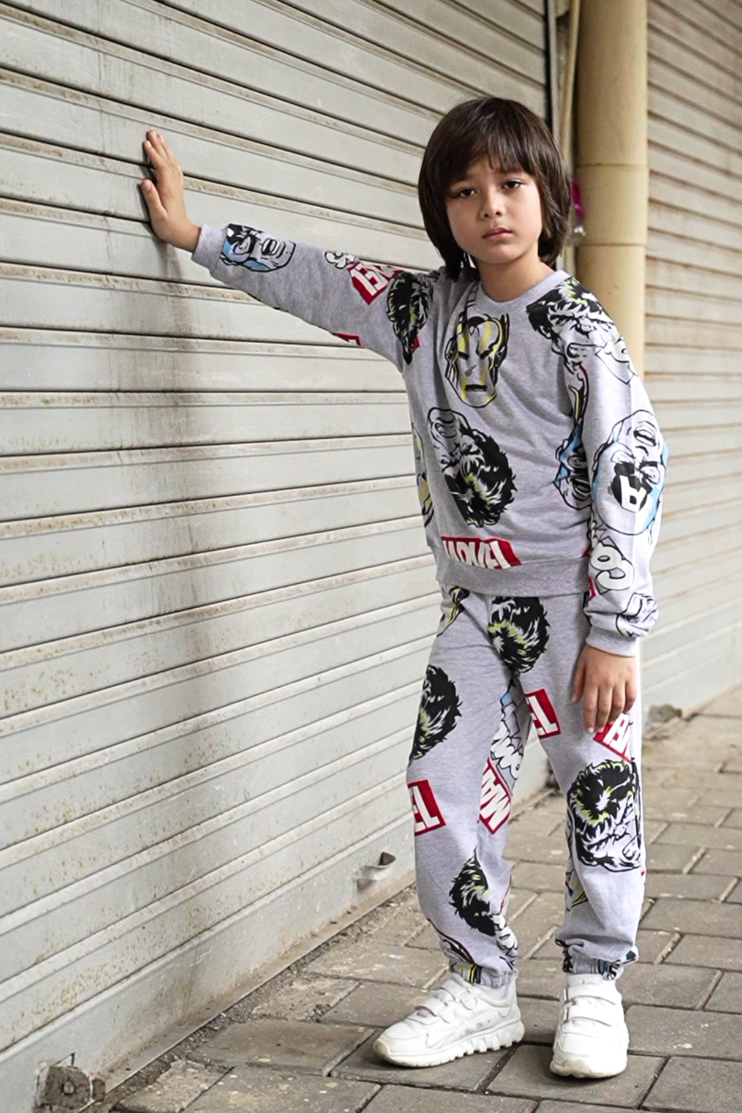 Heroes aren’t born, they’re styled. The Marvel Legend AOP Co-Ord Set packs the power of every fan-favorite Avenger into a cool grey melange design. Covered in bold all-over prints, this sweatshirt and jogger pairing brings instant action vibes to their everyday wardrobe. From playground battles to chilling at home, this set is the uniform of little legends in the making.