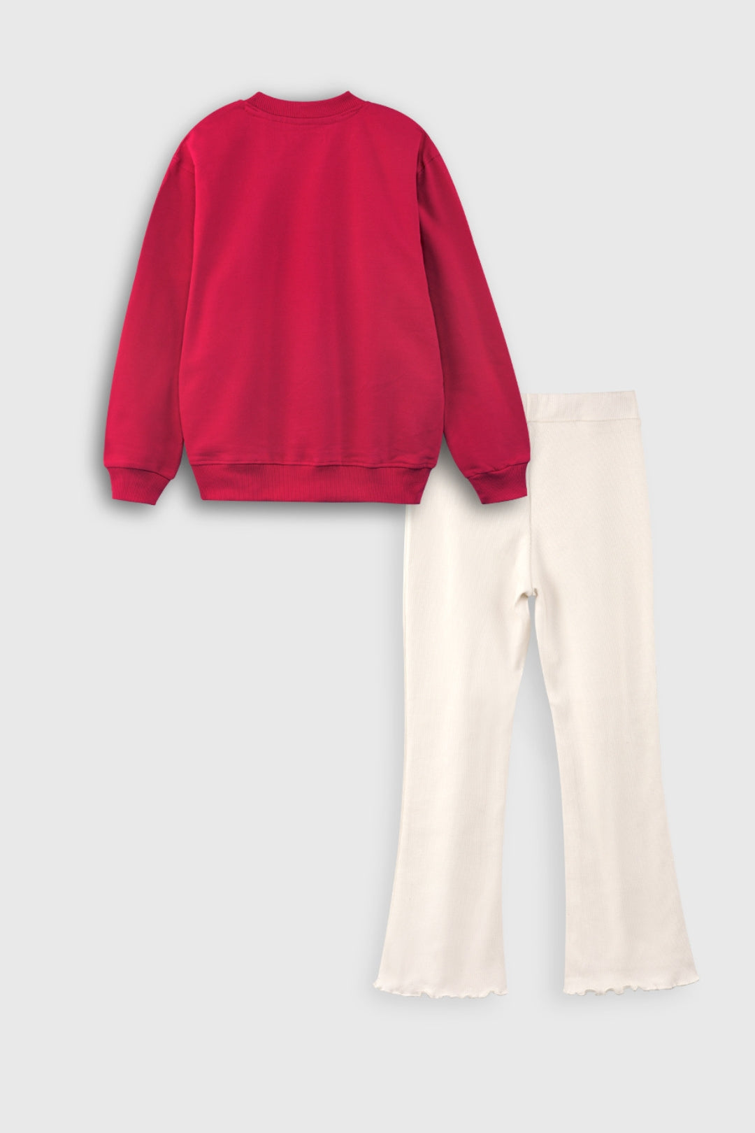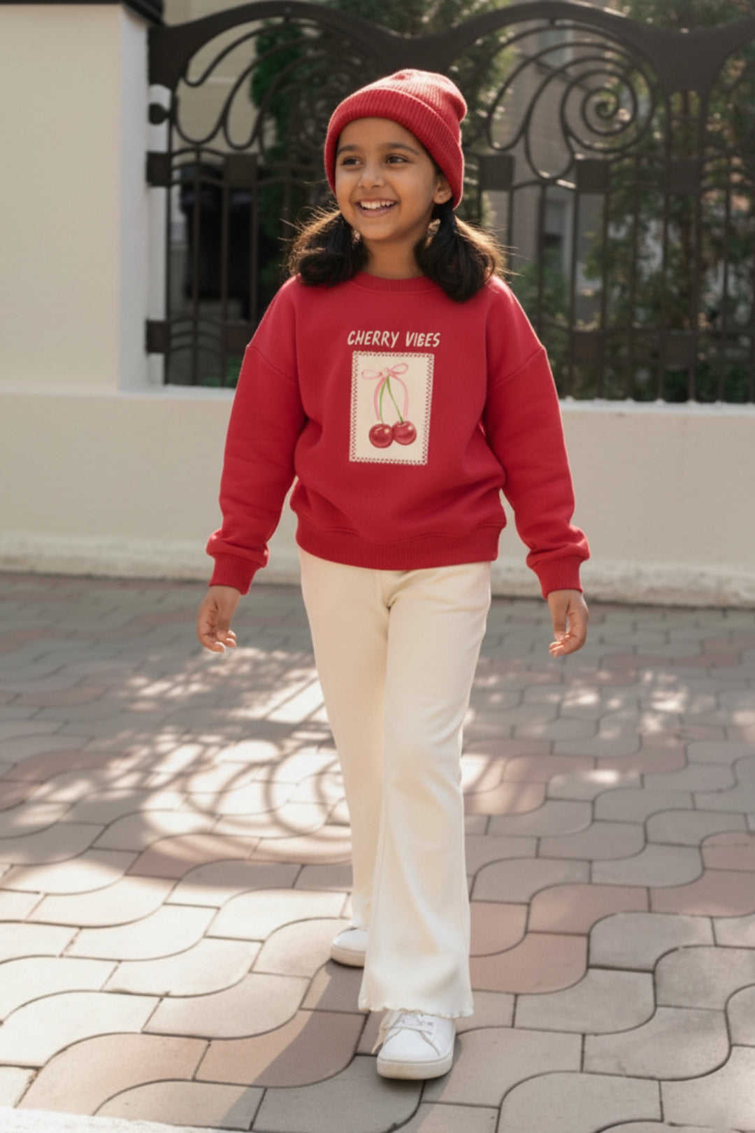 Sweet, bold, and full of personality. This Cherry Vibes Co-Ord Set is all aboutl trendy style. Featuring a red sweatshirt and ripped bell-bottom, this set turns everyday adventures into little fashion moments. Crafted in soft French terry, it keeps every move comfortable while adding a pop of color to their wardrobe.