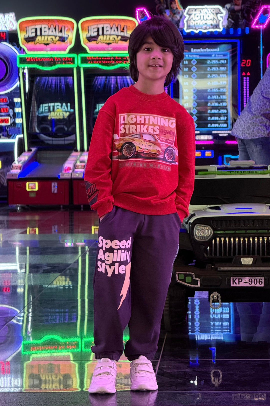 Speed into style with the OG Lightning McQueen Co-Ord Set. Designed for boys who love cars and adventure, this set pairs a statement sweatshirt with joggers that are built for comfort and play. Perfect for school, playdates, or just racing around, it’s a true winner in every little champ’s wardrobe.