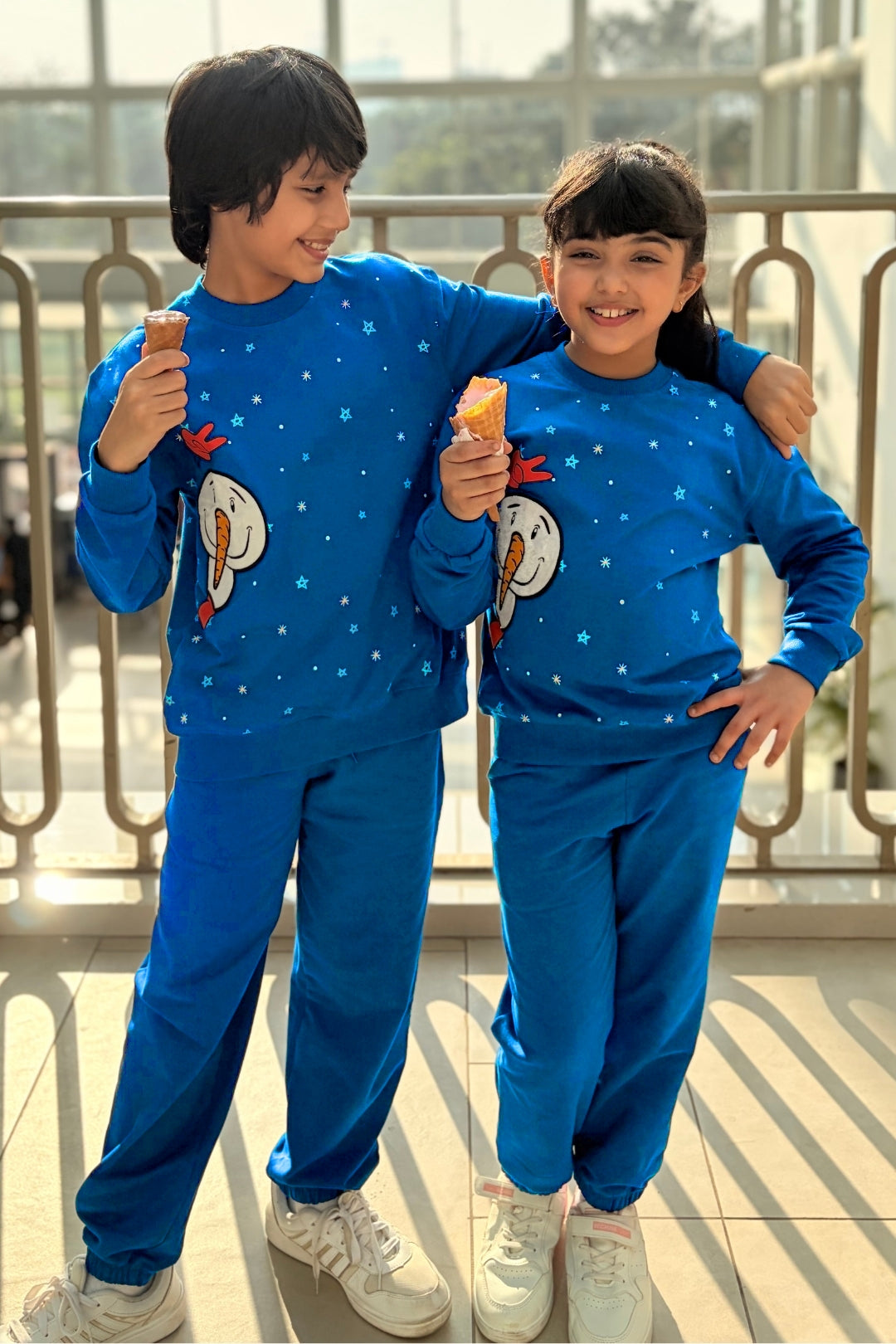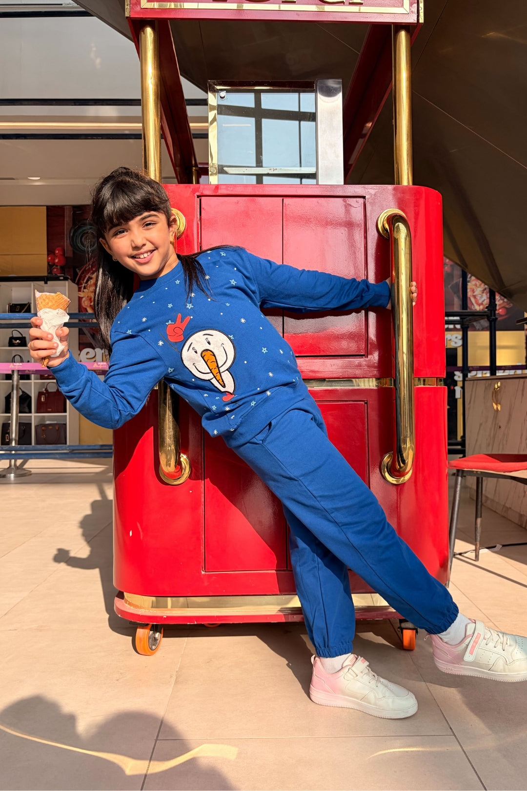 The Snowbody Can Stop Me Co-Ord Set features an adorable snowman on the sweatshirt, paired with joggers for a look that’s full of winter cheer. Made from 100% cotton French terry, it keeps kids warm and ready to take on the chilliest days.