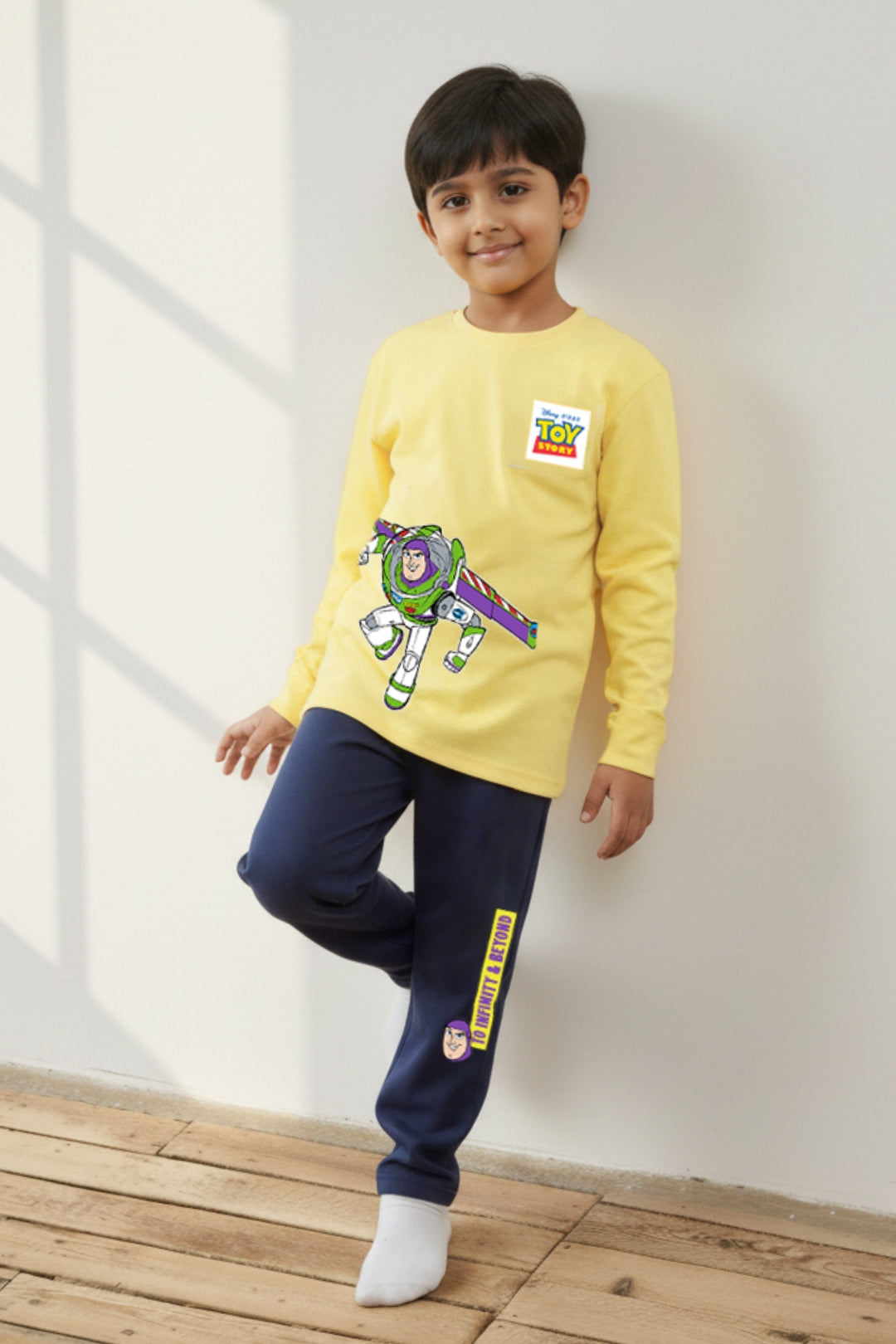 To infinity and bedtime! The Toy Story Infinity Pajama Set brings Buzz, Woody, and the gang to cozy evenings and playful dreams. Made in a soft cotton-blend, this set keeps little adventurers comfy while adding a dash of Toy Story magic to storytime, movie nights, or early morning space missions.
