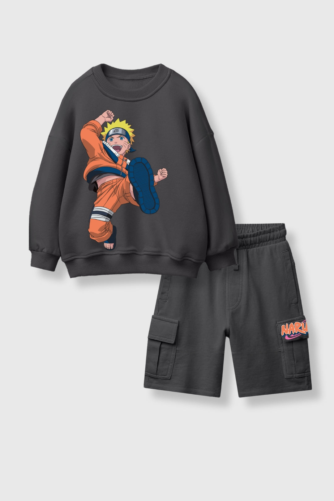 Let your little ninja channel their inner Hokage with our Dattebayo! Naruto Co-Ord Set. Designed in a versatile grey, this sweatshirt and shorts combo is perfect for kids who like their winter fits to be equal parts warm and action-ready. With Naruto leading the way, every step feels like an adventure waiting to happen.