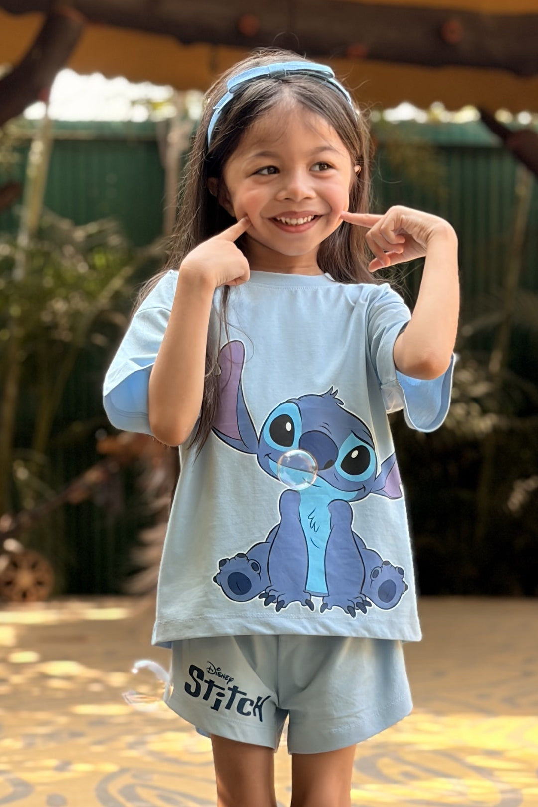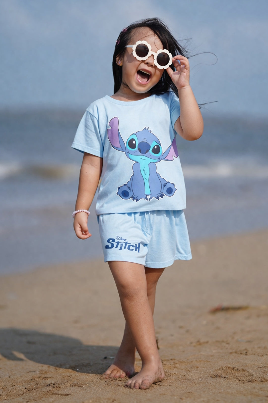 Playtime doesn’t always follow one mood, and Stitch gets that. The boxy tee and roll-up shorts feel just as right for lounging as they do for sudden bursts of fun. A cozy, playful set that goes with the flow of the day.
