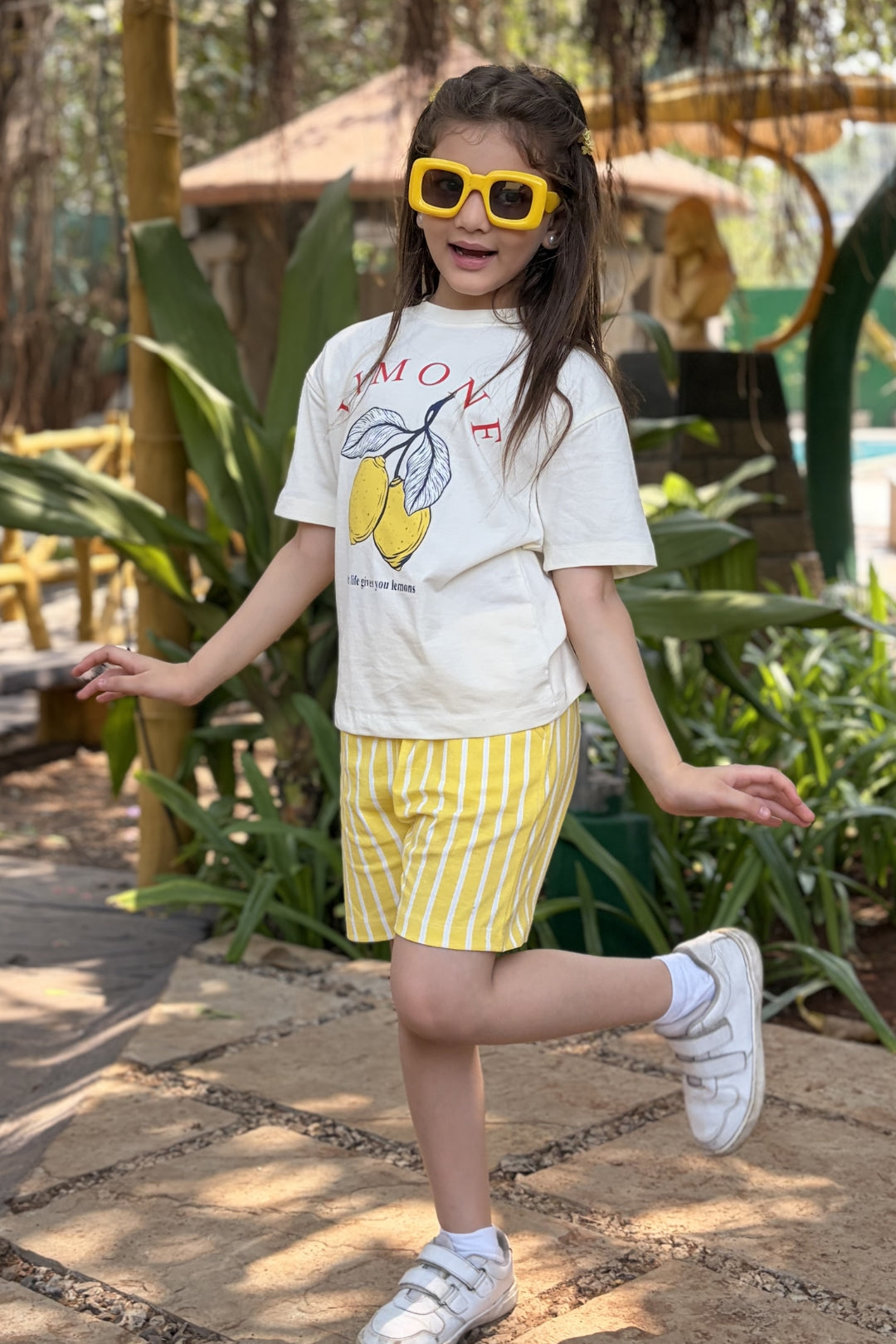 An easy choice for days when you know they won’t sit still. The roomy striped tee keeps things light, and the shorts don’t get in the way while they move. You don’t have to think about the outfit once they step out.