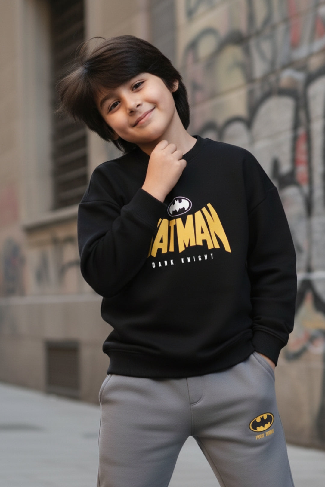 Stealth, style, and all-night energy. The Batman Dark Knight Co-Ord Set brings Gotham vibes to everyday adventures. Crafted in soft cotton-blend fabric, the sweatshirt and joggers keep little heroes move-ready while showing off signature Batman attitude. Perfect for playtime, park missions, or just hanging out like a true Dark Knight.