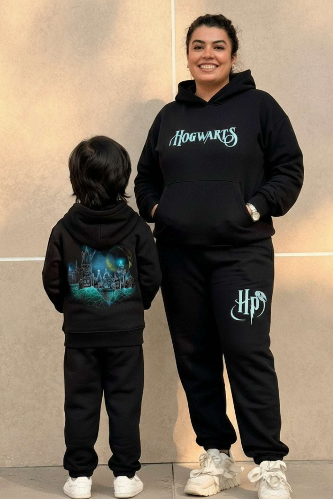 Keep the wands ready because magic runs in the family! The Enchanted Hogwarts Family Twinning Co-Ord Set lets parents and kids cast style spells together. Jet black hoodies with kangaroo pockets and matching joggers in buttery-soft French terry create a look that’s as bold as it is comfortable. Perfect for family adventures, magical movie nights, or wandering through a world of Hogwarts-inspired fun.