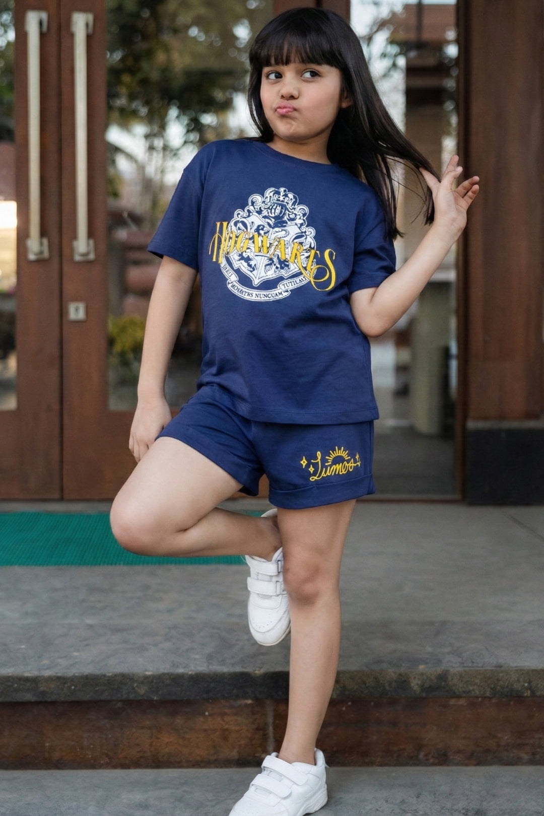 With every tiny step your lil' one takes, our Harry Potter Iconic Lumos Shorts Set will cast a magical breezy blow. Let your lil' explorer guide their brave selves through playtime's most daunting of challenges comfortably in our shorts set featuring an elegant blue top with Hogwarts printed on it alongside matching shorts with a Lumos print.